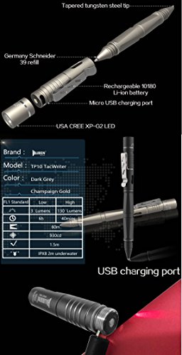 Wuben TP10 130 Lumens CREE XP-G2 LED Compact and Lightweight Tactical Penlight, USB Rechargeable Waterproof 10180 Pen-shaped Flashlight with 10180 Battery and SKYBEN USB Light (Champagne Gold)