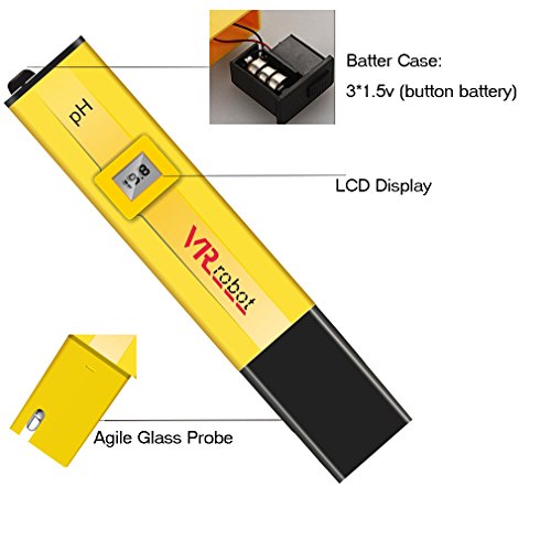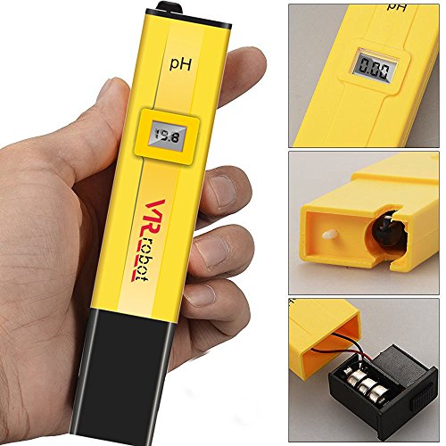 VR-robot Digital PH Meter Tester, PH-009-VR Pocket Pen with PH Buffer Powder , Monitor pH Testing, Aquarium, Water, Swimming Pool, Hydroponics, Kombucha, ph meters Kit(Yellow)