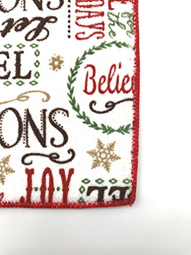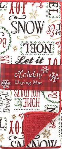 Decorative Holiday Christmas Winter Dish Drying Mat: Joyful Greetings with Reversible Red Waffle Texture Design 15 x 20