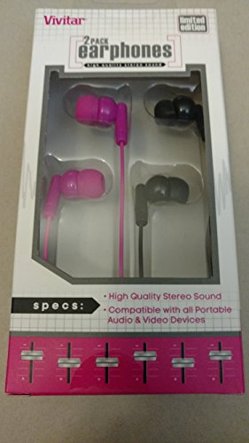 -. Title : Vivitar 2 Pack Stereo Earphones - Black & Pink