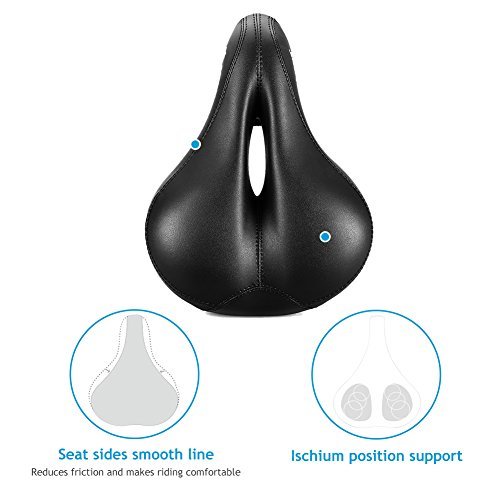 2. The enlarged size (about 10.6?¡À*7.9?¡À*2.36?¡À) makes pressure well-dispersed, rear part of the saddle was thickened processed, which does well in elasticity bringing rider great comfort like sitting in soft sofa.