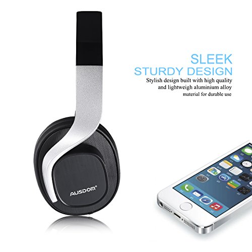 -. Binding : Wireless Phone Accessory -. Brand : Ausdom -. Color : black&silver -. EAN : 0709112294955 -. Feature : Bluetooth V4.0+EDR technology allows you to sync and pair within seconds for stereo music / Dynamic 40mm drivers and full frequency response design deliver rich bass, extended treble and high fidelity sound / 25 hours battery life for media playback or talking, along with 250 hours of standby time per charge and fit with a visible battery fuel gauge keeps the vibe going / Ultra lightweigh (only 160g/ 5.64 oz) and compact design with sturdy construction, easy to carry and convenient storage / Built-in Mic for hands free call in windy or noisy environments, easily switch between songs and incoming calls -. Label : Ausdom -. Manufacturer : Ausdom -. PackageQuantity : 1 -. ProductGroup : Wireless -. ProductTypeName : WIRELESS_ACCESSORY -. Publisher : Ausdom -. Studio : Ausdom -. Title : Ausdom M08 Bluetooth V4.0+EDR Over-Ear High Fidelity Headphones -. UPC : 709112294955