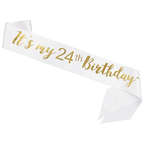 - SUPER VALUE: This “It’s my 24th Birthday” Sash sash is made of white satin fabric, super pretty with gold font. Sash comes ready to wear.
