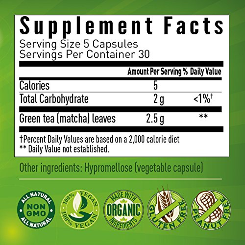 -. Binding : Misc. -. Brand : Kiss Me Organics -. EAN : 0635682809032 -. Feature : Made from 100% organic Kiss Me Organics Culinary Grade Matcha from Japan / Packed with potent antioxidants and nutrients including EGCG, vitamin C, Iron and Potassium / Contains amino acid L-theanine which enhances mood, supports better focus and memory, and provides an energy boost without anxiety / Capsules made from organic ingredients and all-natural vegetable materials / 100% customer satisfaction money back guarantee -. IsAdultProduct : 0 -. Label : Kiss Me Organics -. Manufacturer : Kiss Me Organics -. PackageQuantity : 1 -. ProductGroup : Grocery -. ProductTypeName : GROCERY -. Publisher : Kiss Me Organics -. Size : Matcha Capsule -. Studio : Kiss Me Organics -. Title : Organic Matcha Green Tea Capsule - Powerful antioxidant and energy booster- Japanese (150 easy-to-swallow capsules) -. UPC : 635682809032