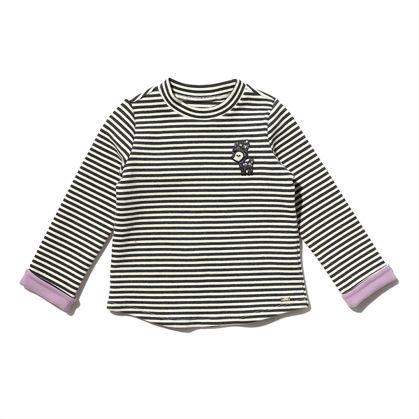 소매끝단을 보라컬러로 배색처리하여 밝은 느낌이 나는 라운드티셔츠 입니다.