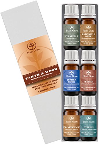 -. Feature : Plant Guru Earth & Wood Essential Oil Variety Set. Includes: Frankincense, Cypress, Fir Needle, Juniper Berry, Patchouli, Vetiver / HIGHEST SUPERIOR QUALITY ESSENTIAL OILS - STRICT QUALITY CONTROL !!! / ALL OUR ESSENTIAL OILS ARE 100% PURE & NATURAL THERAPEUTIC GRADE. NO ADDED INGREDIENTS / WE NEVER SACRIFICE QUALITY FOR PRICE. "ABSOLUTELY NO" SYNTHETICS, CHEMICALS, CARRIER or BASES ADDED / OVER 140 DIFFERENT 100% PURE NATURAL ESSENTIAL OILS , GIFT SETS AND STATER KIT IN TOP 6, 14, 32, 64