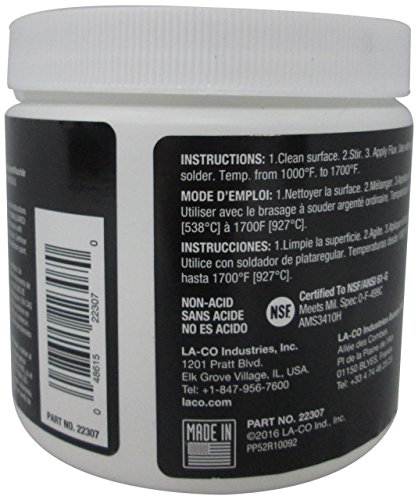 LA-CO High Heat Resistance Silver Brazing Flux Paste, 1000 to 1700 Degree F Temperature, 1 lbs