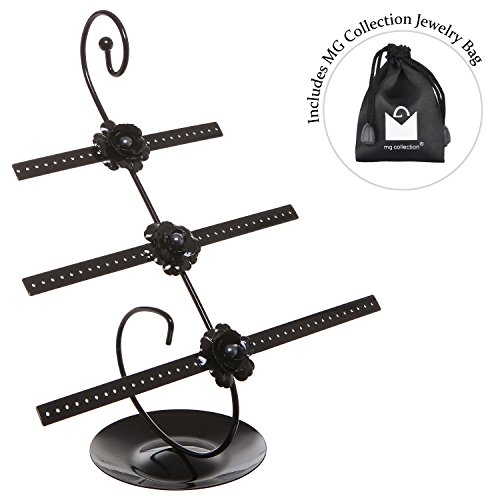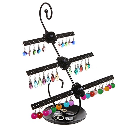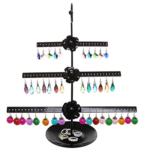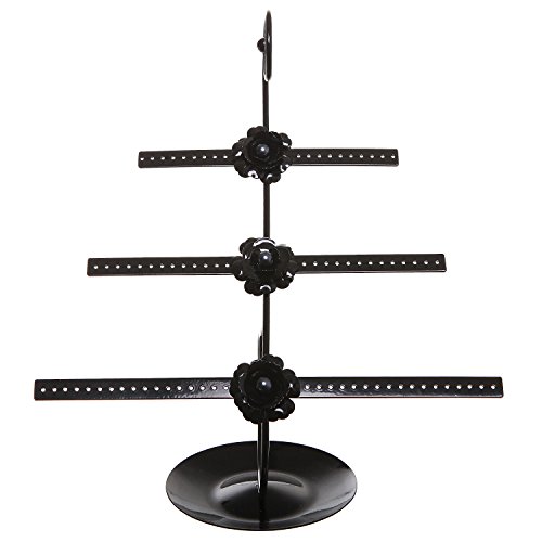Decorative Rose Design Black Metal 3 Tier 76 Pair Earring Holder / Dresser Top Jewelry Hanger Organizer