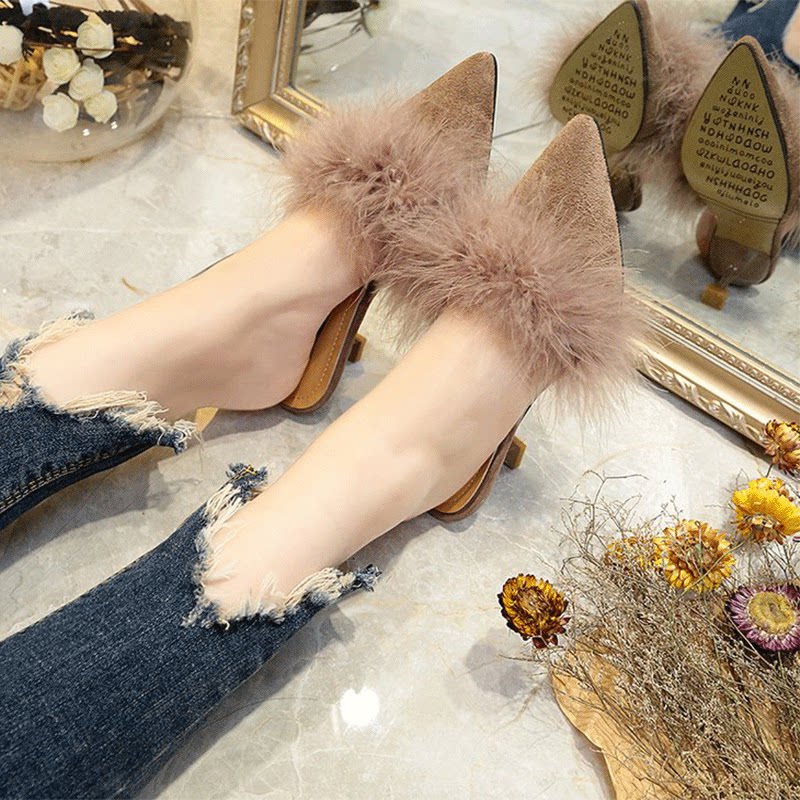 韓国ファッションヒール9cm ファーサンダル サンダルファー付き 靴 秋物新作☆今季トレンドファーサンダル❤ファー モコモコ/厚底サンダル フラット/レディース ファッションシューズ/ファー ファー付 ラビット厚底 部屋/車/事務所など ハロウィン コスプレ 靴 シューズ