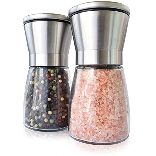 Premium Salt Pepper Grinder Set | Brushed Stainless Steel and Glass Shakers, 6oz Capacity, Set of 2 | Grinder / Mill with Adjustable Coarseness | by Premium Home Quality Entertain Like a Pro Now you can entertain friends and family with your finely prepared meals and not have to be embarrassed by your old salt and pepper shakers. These easy to use salt and pepper grinders can be filled with your favorite spices, such as peppercorn, sea salt, Himalayan salt, cloves, or any of your other favorite spices, adjust the coarseness with multiple levels from fine to course and bon appetit, a perfectly seasoned gourmet meal. Salt and Pepper Grinder Set Features: ? Set of 2 Adjustable Coarseness Salt Pepper Mills ? 6 Ounce Capacity (Each) ? Highest Quality Reinforced Ceramic Grinder Housing. ? Stainless Steel Removable top with Glass Body ? Dimensions - 5 1/4 inches (Height) and 2 3/4 inches (Width) ? Satisfaction Guaranteed. We're interested in happy customers ORDER NOW by clicking Add to Cart, to get your Premium Salt and Pepper Grinder Set now. Please note: The grinders do not come filled with spices. You're free to spice up your life with your choice of seasoning. All Premium Home Quality Salt and Pepper Grinders are shipped from the US! 0 |