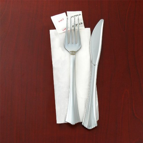 Reflections Plastic Fork, Knife, Salt, Pepper and Napkin Kit, Silver (125-Count)