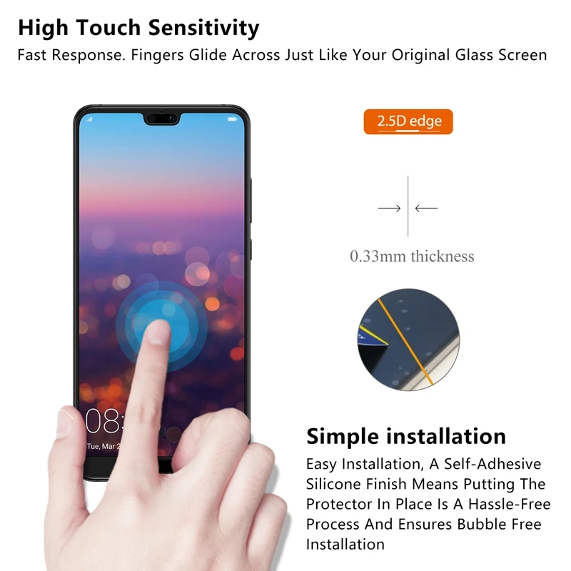 Bubble-Free Adhesives for easy installation and no residue when be removed. Hydrophobic and Oleophobic screen