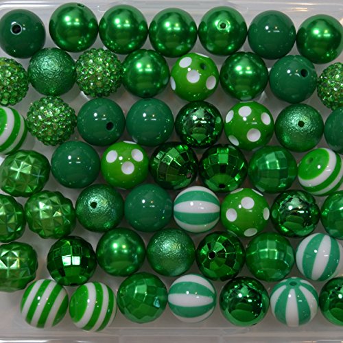 20mm Bulk Mix of 52 Emerald, Christmas Green Chunky Bubblegum Beads 11 Styles Acrylic Gumball Loose Beads Lot