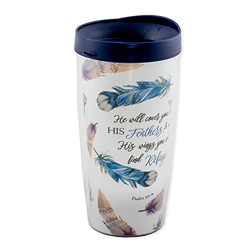 Refuge Under His Wings Psalm 91:4 Scripture Feathers 16 Oz Tumbler Mug with Lid
