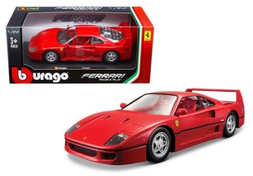 -. Title : New 1:24 W/B BBURAGO COLLECTION - RED FERRARI RACE & PLAY - FERRARI F40 Diecast Model Car By Bburago