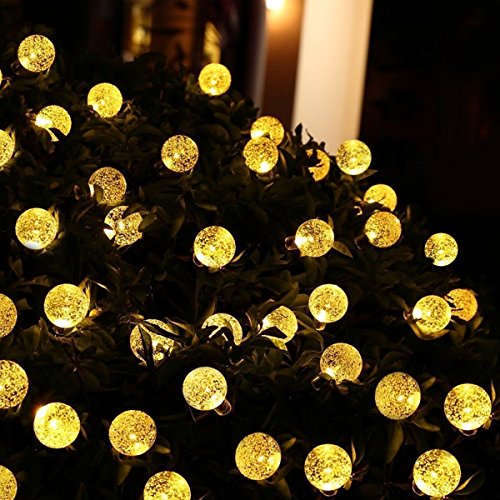 Satu Brown Solar String Lights 60 LED 36ft Outdoor Fairy Lights Crystal Ball Christmas Globe Lights for Home, Garden, Patio, Parties, Christmas Decoration