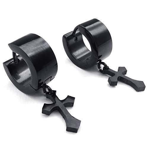 -. Title : KONOV Mens Stainless Steel Cross Hie Hinged Hoop Earrings, Black