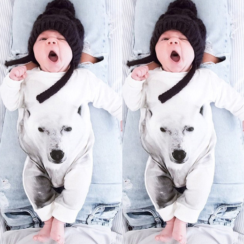 Boys and girls white wolf long-sleeved harness childrens wear Kids clothing 22523