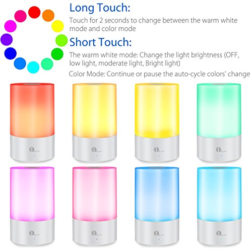 1byone Bedside Lamp Touch Sensor Cordless Table Light with Rechargeable Battery, Dimmable RGB Colors Changing LED Light for Bedroom, Living Room, Camping - Warm White