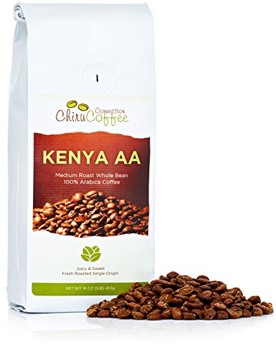 Chiru Coffee Connection Fresh Roasted Kenya's Finest AA Roasted Whole Bean Arabica Coffee, 16 oz, Bag 1 lb