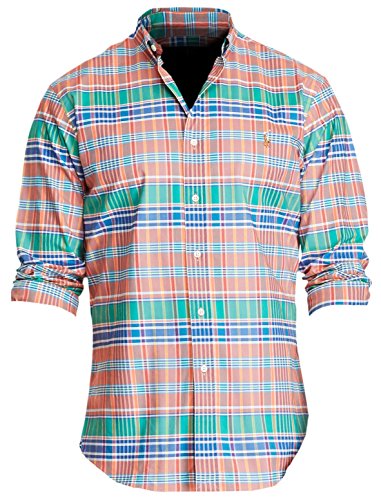 Polo Ralph Lauren Men's Slim-Fit Plaid Stretch Oxford Shirt, M, Melon/Royal