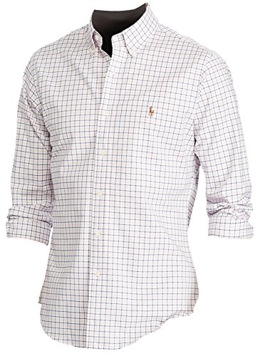 Polo Ralph Lauren Men's Slim-Fit Plaid Stretch Oxford Button-down Shirt (L, Pink/White)
