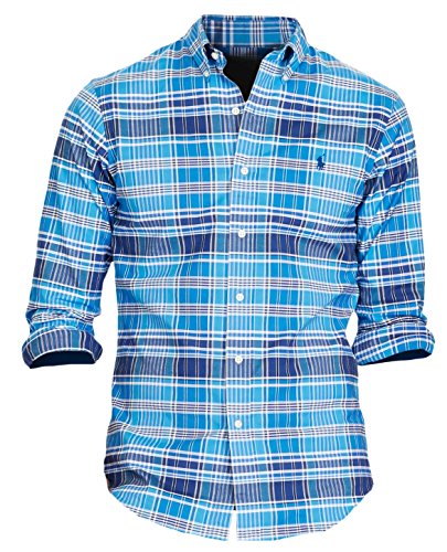 Polo Ralph Lauren Men's Slim-Fit Plaid Stretch Oxford Shirt, L, Blue/Navy