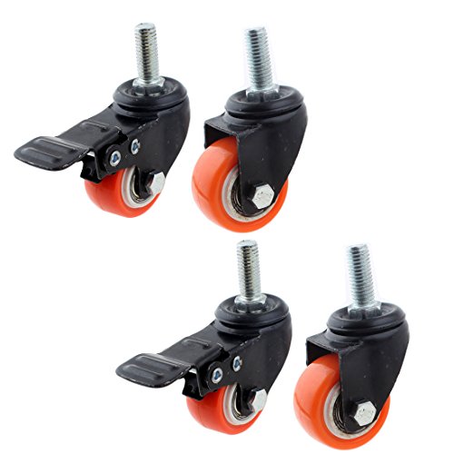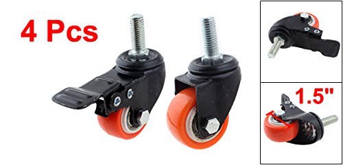 uxcell 10mm x 25mm Threaded Stem 1.5 Inch Wheel Dia Swivel Caster Orange 4pcs
