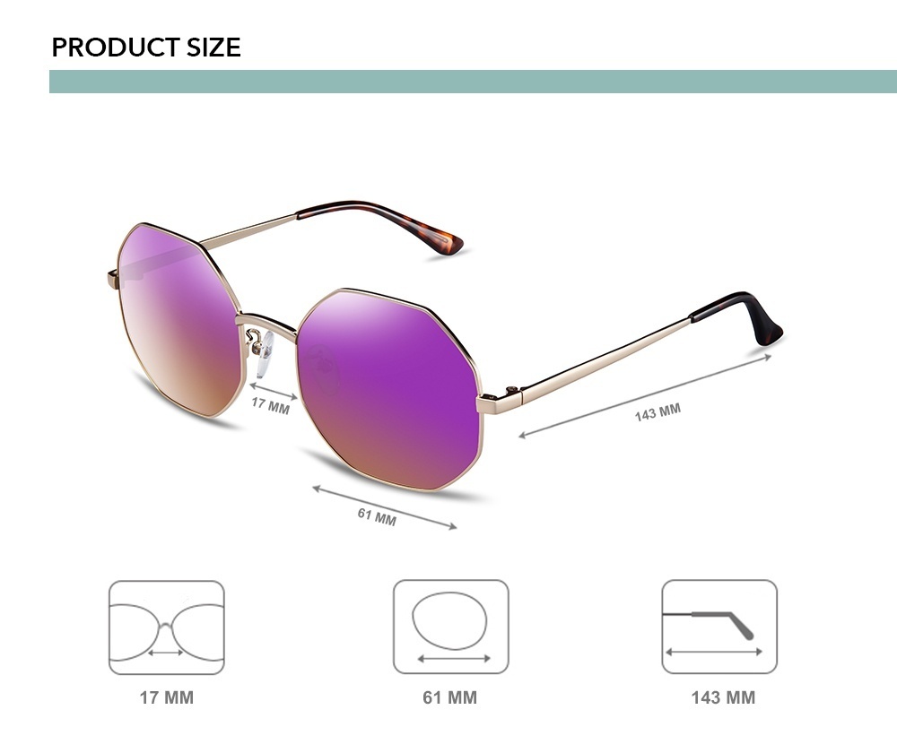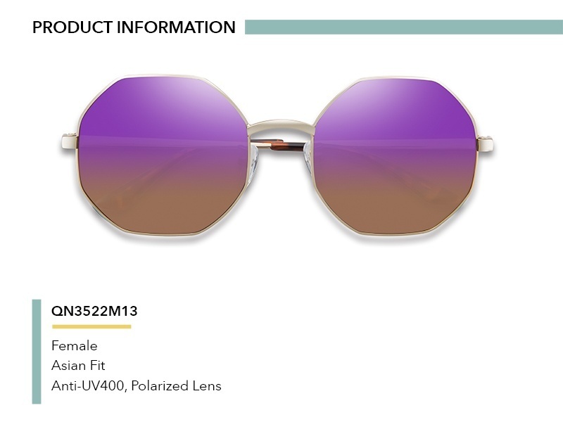 Terinspirasi dari seni sudut, pinggiran metal, kacamata QINA ini adalah wajib punya untuk kalian yang fashion forward. Cocok untuk pria dan wanite, bentuk lensa octogonal yang unik ini memiliki warna frame LIGHT GOLD dan lensa UNGU POLARIZED untuk kenyamanan maksimum dan proteksi UV 400 untuk melindungi mata dari efek berbahaya sinar matahari. Dikirim dengan kantong designer premium yang unik dan colorful, serta kain pembersih GRATIS