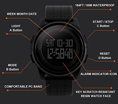 -. Title : Aposon Men's Digital Waterproof Electronic Sport Watch Military 24H Dual Two Time Quartz Casual LED Back Light Thin Unique Simple Design 164ft 50M Water Resistant Calendar Month Date Day - Black