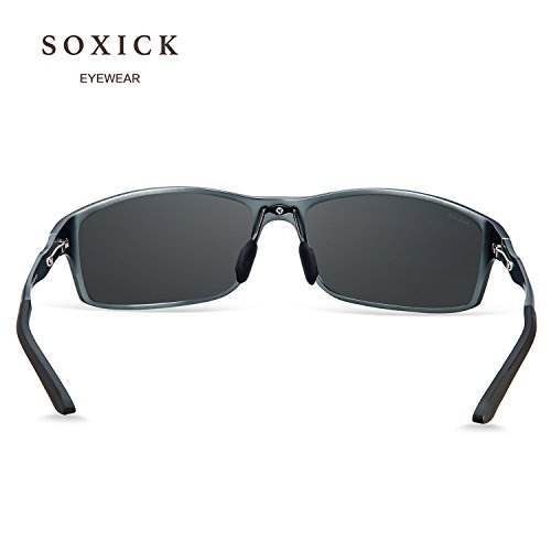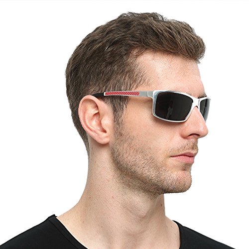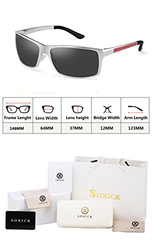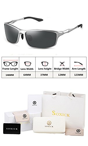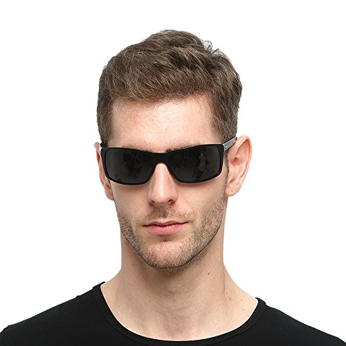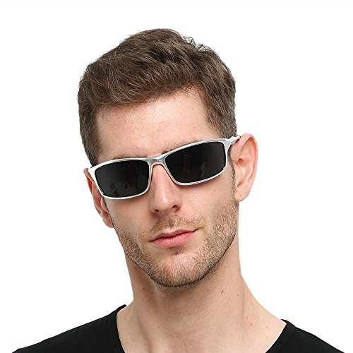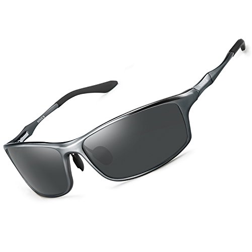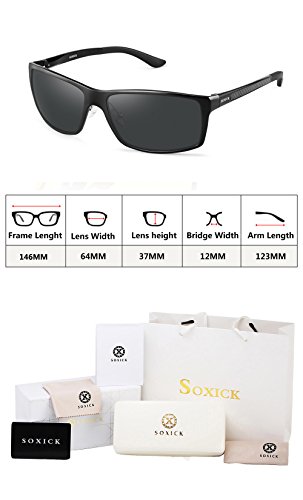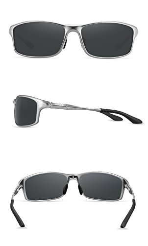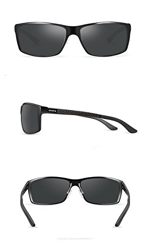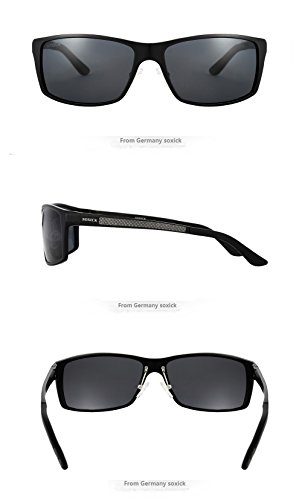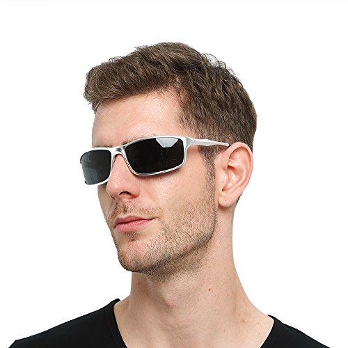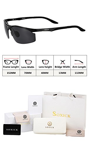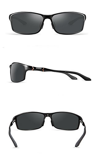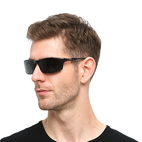Product Description Features Benefits: 1.Polarized black lens sunglasses help restore true colour 2.Cool and Stylish design sports sunglasses for mens. 3.Easy to adjust nose pad and temples to fit your size 4.The super light Al-Mg Metal frame: You can hardly feel them on your face 5.Polarized lenses block 100% of the sun's harmful UVA UVB rays 6. Include 1 Pair HD polarized sunglasses with imported resin lenses and TR90 frame. Complimentary Gift packaging box,Glasses case,Soft Pouch,Clean cloth,Product manual Polarized check sticker and Membership card.Perfect gift for someone special.