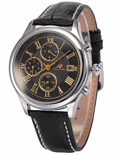 -. Title : Ks メンズ ラグジュアリー 6ハンズ 自動機械式 日付・月・曜日表示 ゴールドケース ブラック レザー腕時計KS147