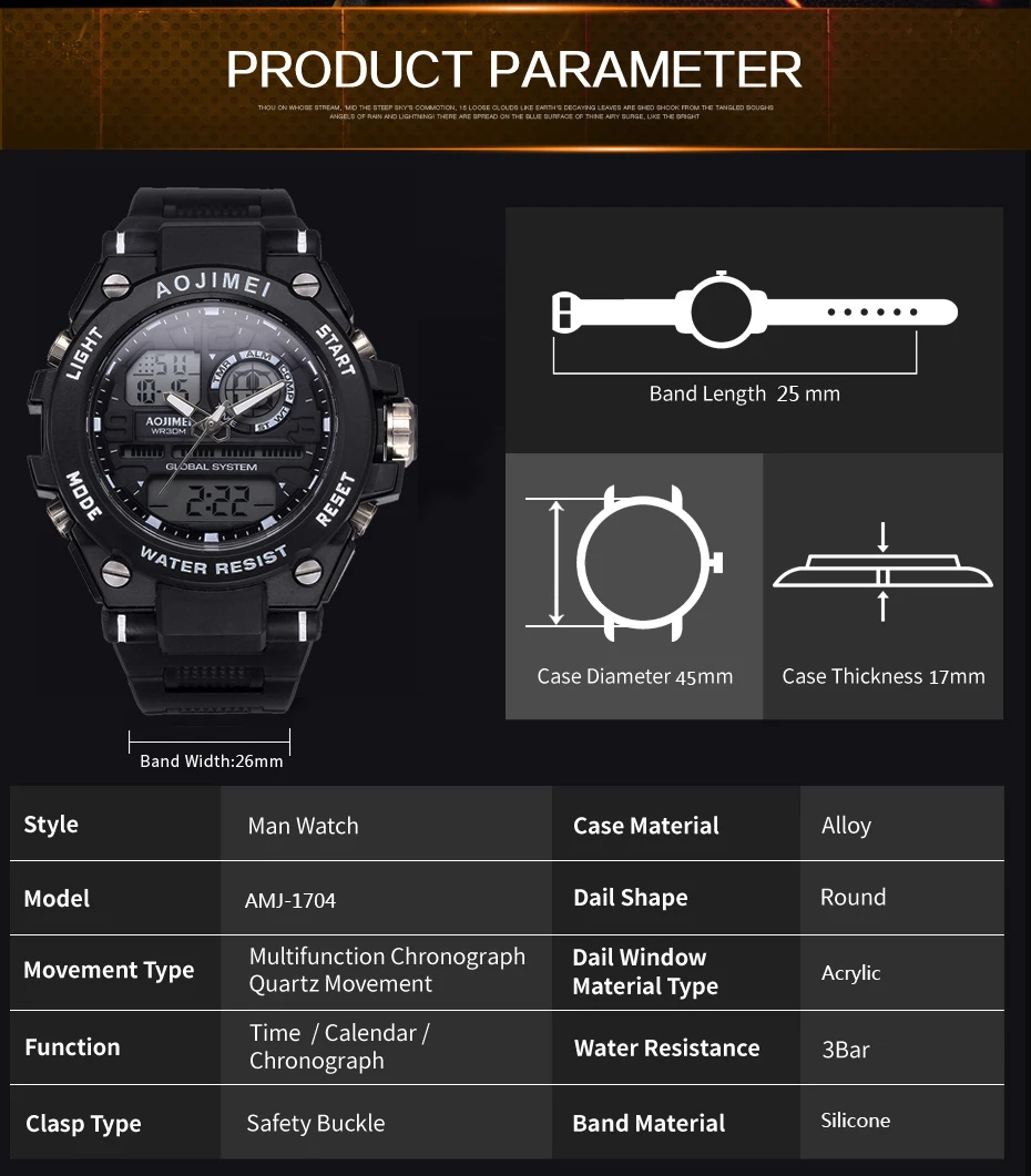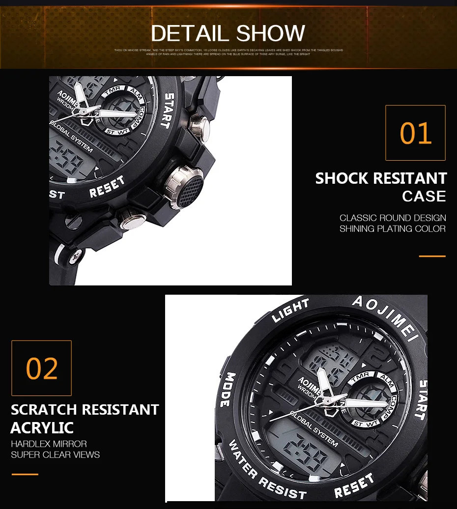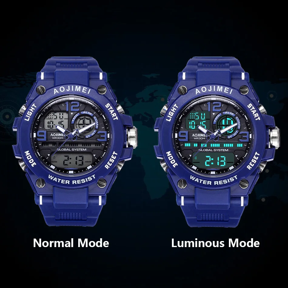 Feature:Water Resistant,LED display,Multiple Time Zone,Stop Watch,Complete Calendar,Back Light,Shock Resistant,Chronograph,Luminous Hands,Auto Date,Anti-magnetic,Alarm