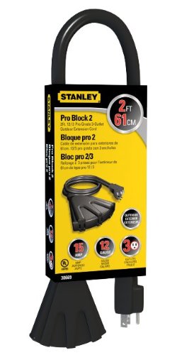Stanley 30669 Pro Block 2 Grounded 3-Outlet Outdoor Extension Cord, 2-Feet, Black