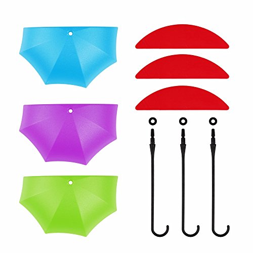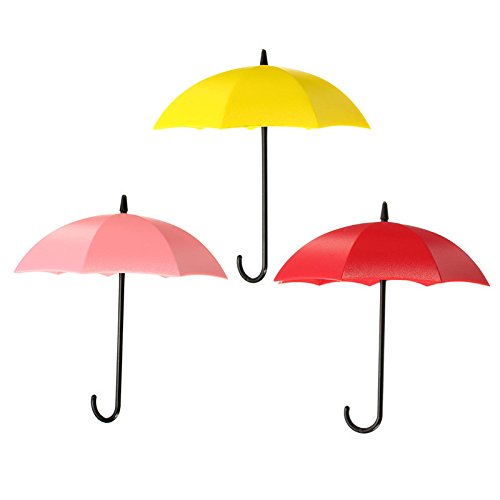 -. Feature : With 3m adhesive tape, easy to stick on the wall firmly. / Two kinds of install method, it can be used as a hook or a small container on the wall. / Umbrella pattern strong enough to hold your keys and other gadgets. / Small size, 3pcs in package, different color. / Ideal for kitchen, bathroom, hallway, living room, desk side, etc. decoration.