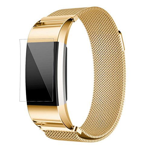 -. Title : Watch, TOPUNDER Milanese Stainless Steel Watch Band Strap Bracelet + HD Film For Fitbit Charge 2 GD