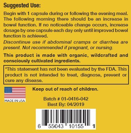 -. Feature : ✓ GENTLE CLEANSING PROPERTIES Give A Non-intimidating Experience* / ✓ ANTI-TOXIN - Supports the removal of toxins from the colon* / ✓ WASTE REMOVAL - Supports waste removal* / ✓ INTESTINE HEALTH - Helps strengthen the long term health of the large intestine* / ✓ ORGANIC - Made with organic, wildcrafted and consciously cultivated ingredients: Aloe vera leaf, Cascara Sagrada bark, Slippery Elm inner bark, Senna leaf, Turkey Rhubarb root, Psyllium seed, Barberry root