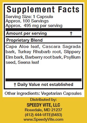 -. Title : SpeedyVite Happy Colon Gentle Support for Bowel Function* Aloe vera leaf Cascara Sagrada bark Slippery Elm Senna leaf Turkey Rhubarb Psyllium Barberry root ★Made in USA