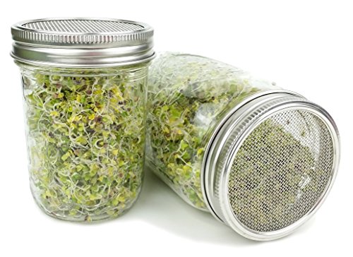 Lotus & Sky PURE STAINLESS STEEL SPROUTING LIDS turn wide-mouth mason jars into sprouting jars. NO PLASTIC OR PLAIN STEEL! There are TWO LIDS in each set, so you can grow a variety of sprouts and keep a constant supply on hand. Try organic broccoli sprouts, lentil spouts, bean sprouts and other favorites. Grow your sprouts at home for the freshest sprouts at fraction of the grocery store price. Enjoy them in your salads, sandwiches, smoothies, stir fries, garnishes, casseroles, soups and stews!
