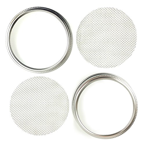 Pure Stainless Steel Sprouting Lids - Set of 2 Stainless Steel Sprouting Screens and Rings for Wide Mouth Mason Jars - Lotus & Sky