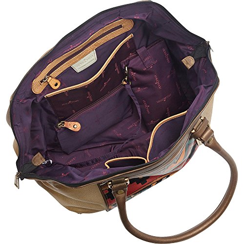Lined interior features backwall zippered and slip pocket and two frontwall slip pockets