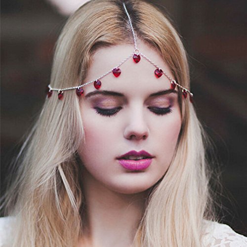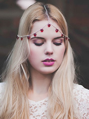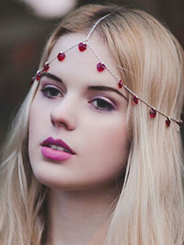 Yean Alloy Headband Red Heart Bread Shaped Jewelry Hair Band Head Chain Head Piece for Women and Girls
