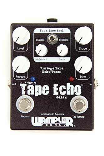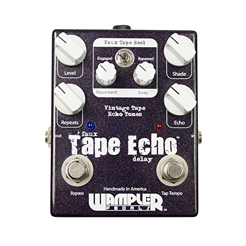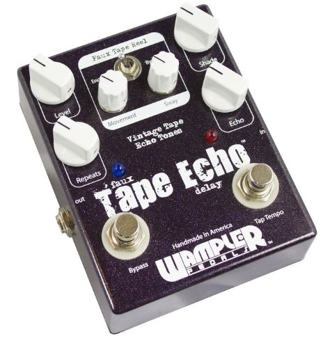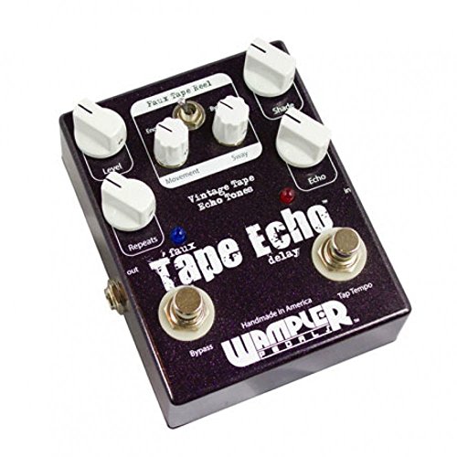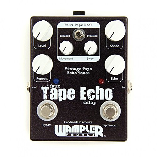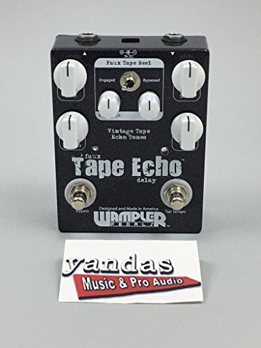 Studio : Wampler Publisher : Wampler Product Description Wampler's Faux Tape Echo Pedal with Tap Tempo gives you the warmth and character you get from vintage tape echo units, together with the reliability and repeatability of a modern digital effect. Most digital delays sound pretty blah on guitar - but the Faux Tape Echo rocks, bigtime. Its hybrid design combines digital delay with an all-analog signal path. The new Tap Tempo switch lets you control the speed of your delay with a simple tap of your foot. Six dials give you control over your echo effect, while a defeatable modulation circuit deploys an amazing wow and flutter emulation that's based on your pick attack. If you're sick of cold and lifeless digital delays, GearNuts has your prescription: the Wampler Faux Tape Echo Pedal with Tap Tempo. 0