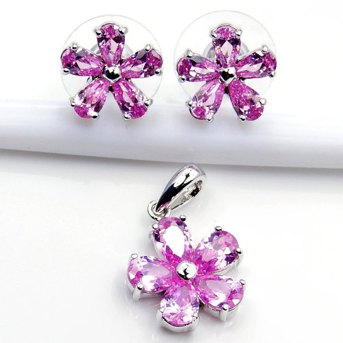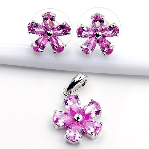 -. Binding : Jewelry -. Brand : The Silver Plaza -. Department : womens -. Feature : Pink Cubic Zirconia Flower; Pendant: 0.85" long/0.5" wide; Earrings: 0.4"x0.4" / .925 Sterling Silver; Weight of set: 4.2 grams / Each item comes shipped in a jewelry box. / You are looking at a one of a kind piece, the pictured jewelry will be the same exact piece you'll receive. / Each item is designed and handcrafted by our artisans. -. Model : X226 -. MPN : X226 -. PartNumber : X226 -. ProductGroup : Jewelry -. ProductTypeName : FINEEARRING -. Title : Sterling Silver 'Filigree Flower' Pink CZ Stud Earrings & Pendant Set