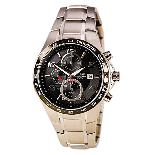 -. Title : Pulsar by Seiko Mens Black Dial Quartz Chronograph Dress Bracelet Watch PF8373