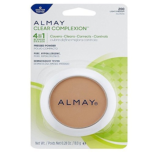 Almay Clear Complexion Pressed Powder, Light/Medium is the perfect complimentary powder to your makeup routine. Featuring Blemisheal Technology contains salicylic acid to help heal and conceal blemishes for a shine-free and even complexion. Formulated with mineral complex to absorb oil. Contains aloe and chamomile to soothe skin and help reduce redness. Pair with the Almay Clear Complexion Concealer and Foundation for the ultimate clear complexion. Available in 3 shades. Dermatologist tested. Almay - Quality ingredients. Hypoallergenic. American science.Feature