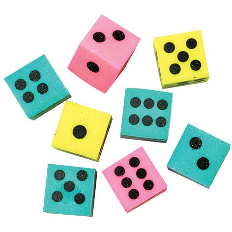 Lot Of 144 Assorted Color Dice Theme Erasers