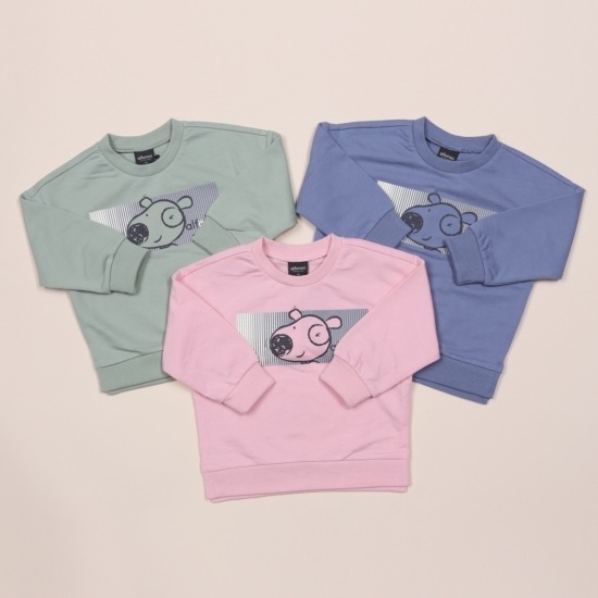 미니쮸리 소재의 맨투맨 티셔츠캐릭터 나염과 살짝 드롭된 어깨가 착장시 스타일리쉬해 보이는 아이템파스텔 컬러감으로 세련된 티셔츠