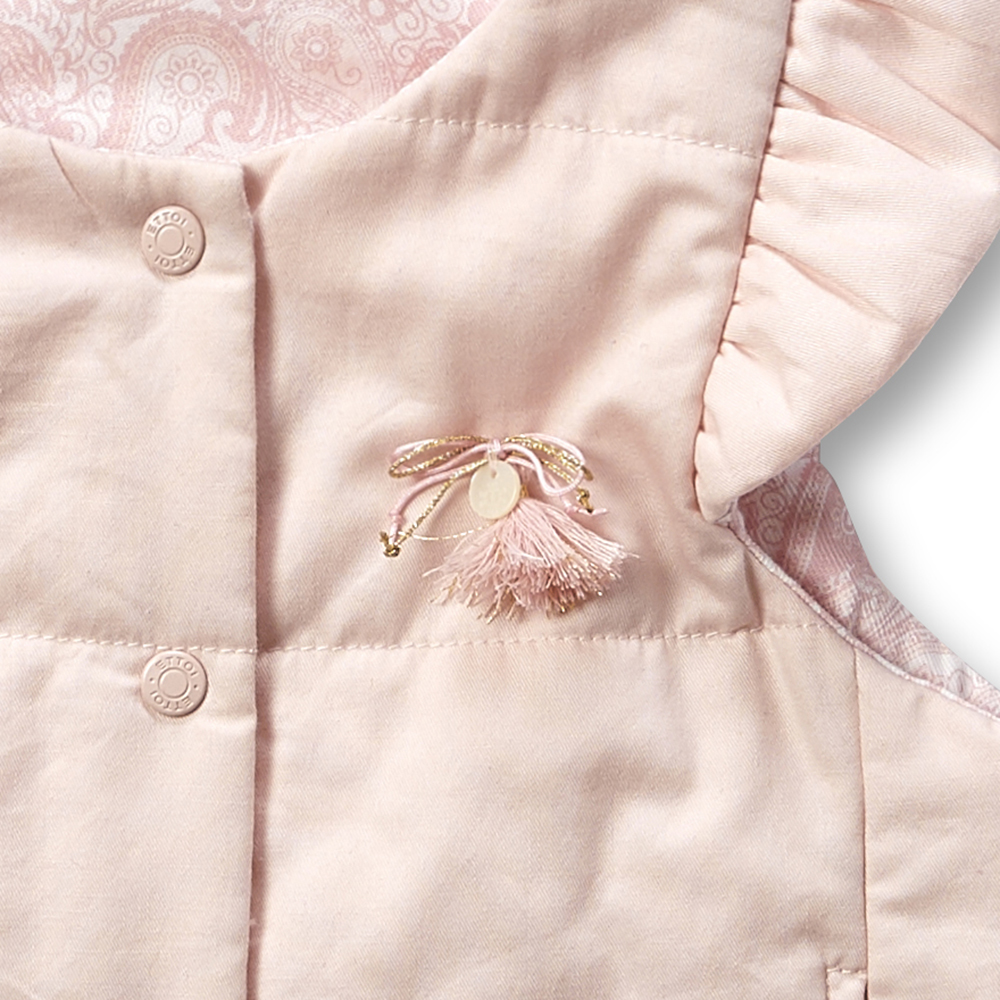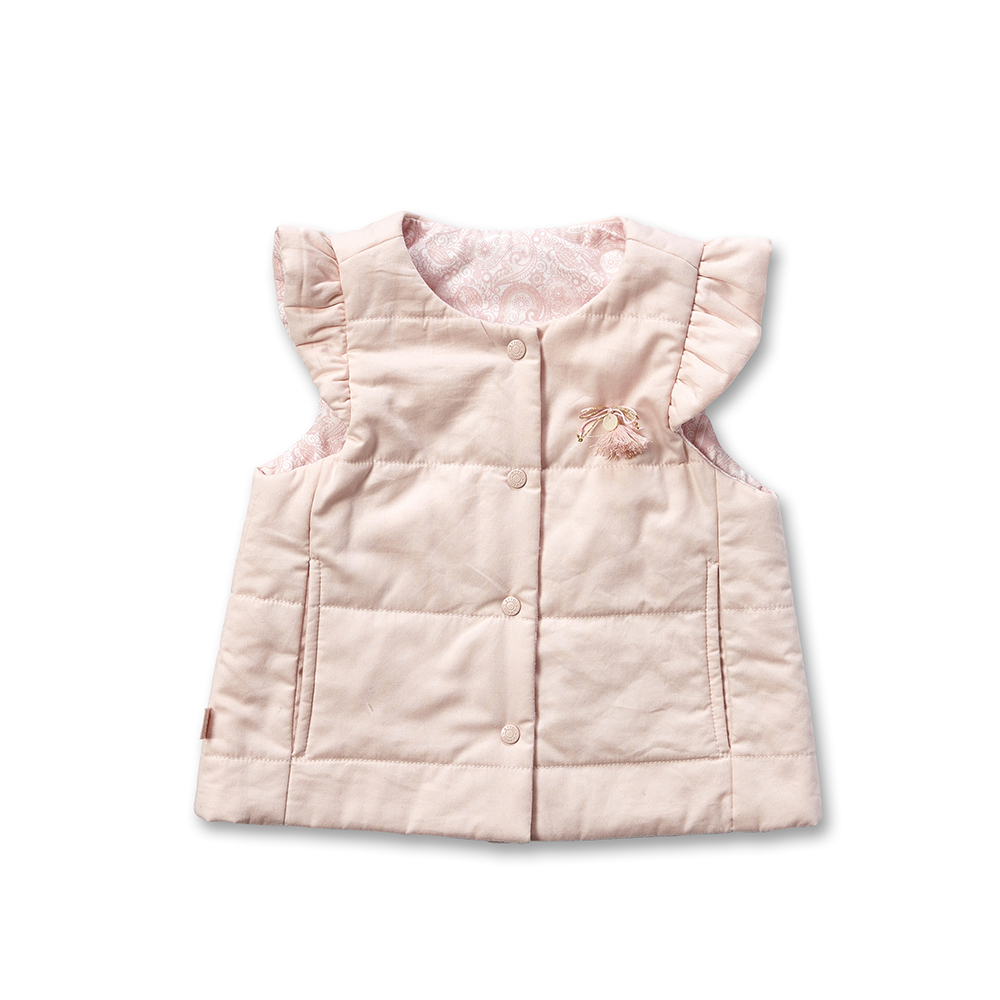 ■ 상세설명 : 피치핑크 컬러의 사랑스러운 어깨 프릴장식이 돋보이는 리버시블이 가능한 상품으로 활용도가 높은 아이템입니다.