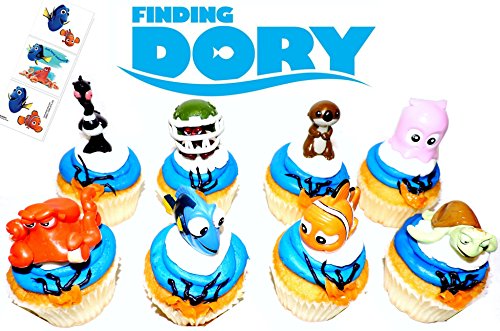 Studio : Let them Be Little Publisher : Let them Be Little Binding : Toy Product Description Get ready for a "whale of a" good time with this figure set toy kit of 8 fun Cake figures with 3 colorful easy to use temporary tattoo squares. These fun figures are 1 to 2 inches tall and wide depending on the figure. Figures are self standing. Finding Dory is a fun movie with non-stop laughs and this fun set of figures helps you to recreate this great movie. This kit includes many popular characters. These nicely detailed figures are made of hard plastic for hours of fun play time. Also included is 3 square temporary tattoo squares featuring a few different Dory art works (randomly sent). This set of Finding Dory toys are great for any Disney fan and will also make a "FIN"-tastic gift. **Wash with soap before use on cake. 0